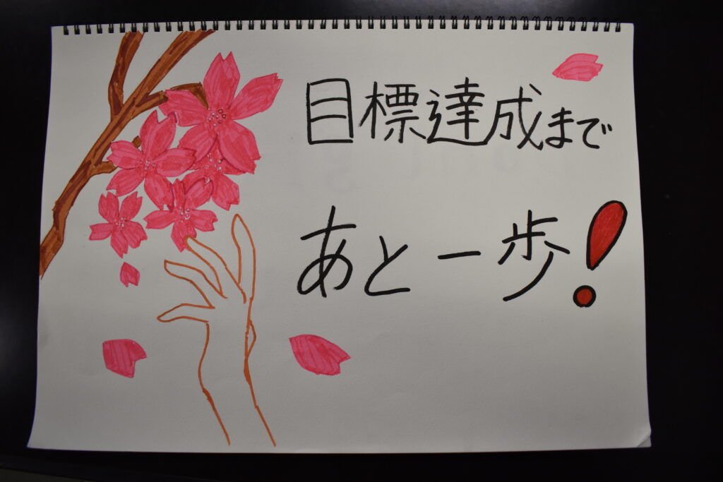 応援メッセージの「目標達成まであと一歩!」には、今まで受験生の皆さんが積み重ねてきたことが原動力となり、入試本番を迎えた時大きな力として発揮されますようにという願いが込められています。