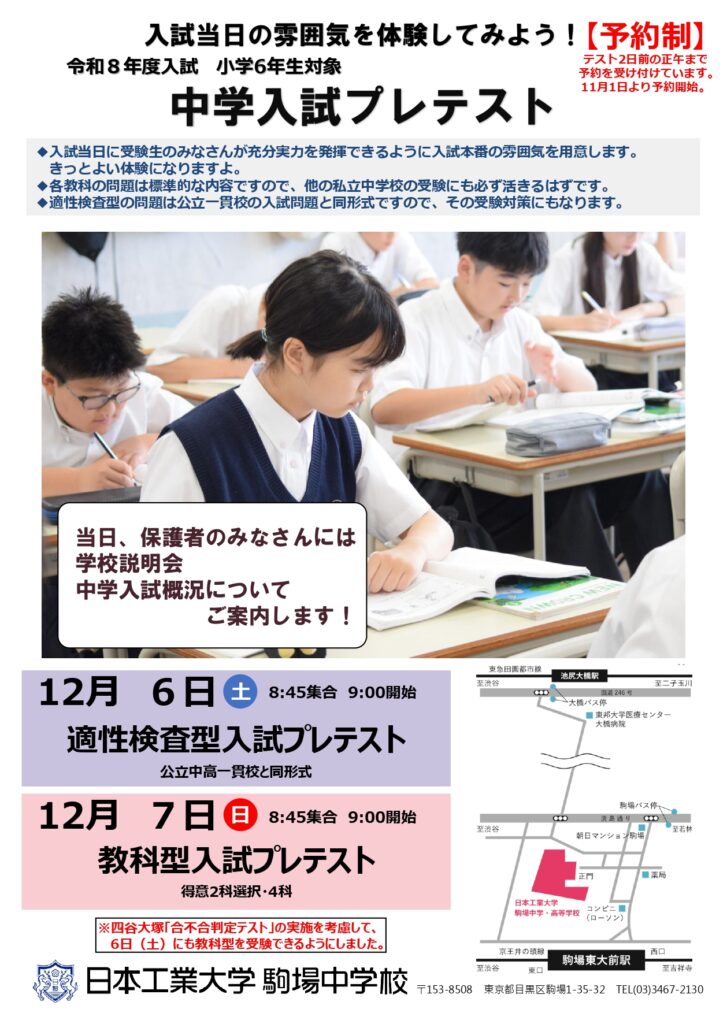 入試プレテスト【小6対象】 予約受付開始のお知らせ