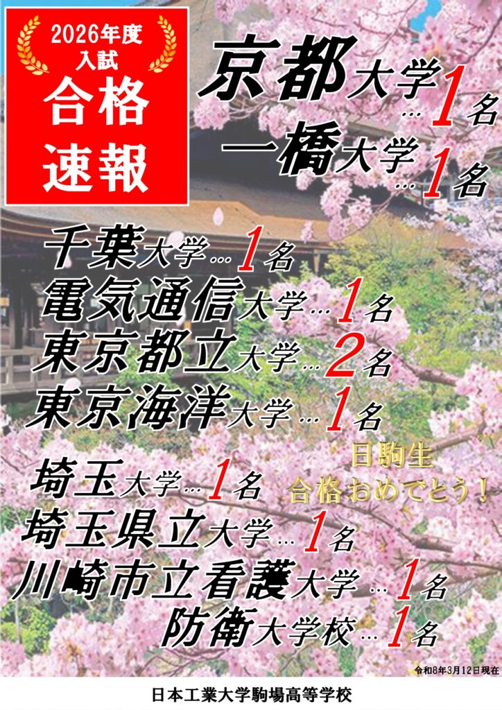 令和8年度大学入試 合格者速報(3/12更新)